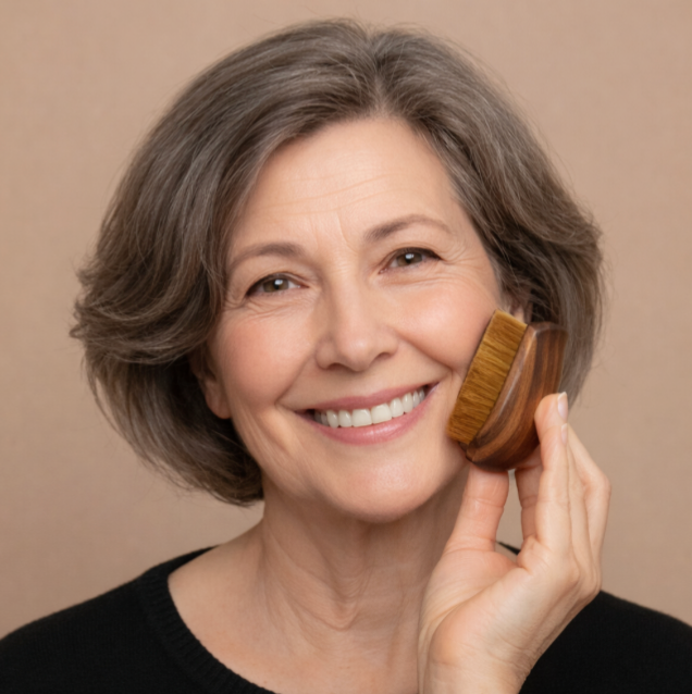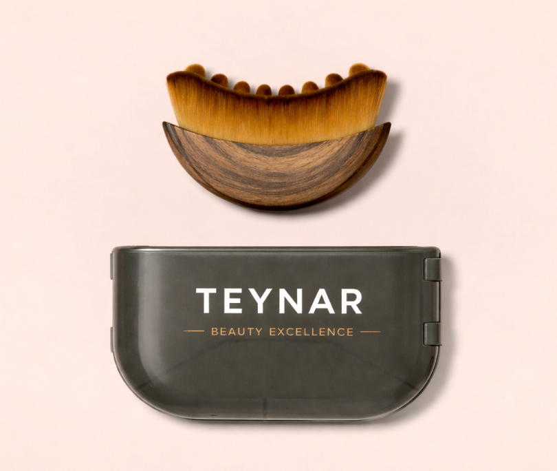 A escova facial TEYNAR, com cerdas ultramacias, limpa em profundidade e massageia suavemente, deixando a pele mais luminosa e firme todos os dias.